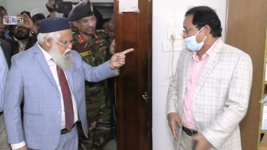 প্রত্যক্ষদর্শী সূত্রে জানা গেছে, হাসপাতালের ক্যাজুয়ালটি অপারেশন থিয়েটার পরিদর্শনে গিয়ে ডিজি কক্ষের ভেতরে টেবিল থাকার কারণ জানতে চান চিকিৎসকদের কাছে। এ সময় জরুরি বিভাগের ক্যাজুয়ালটি ইনচার্জ ধনদেব চন্দ্র বর্মণ তাঁর সঙ্গে তর্কে জড়ান।