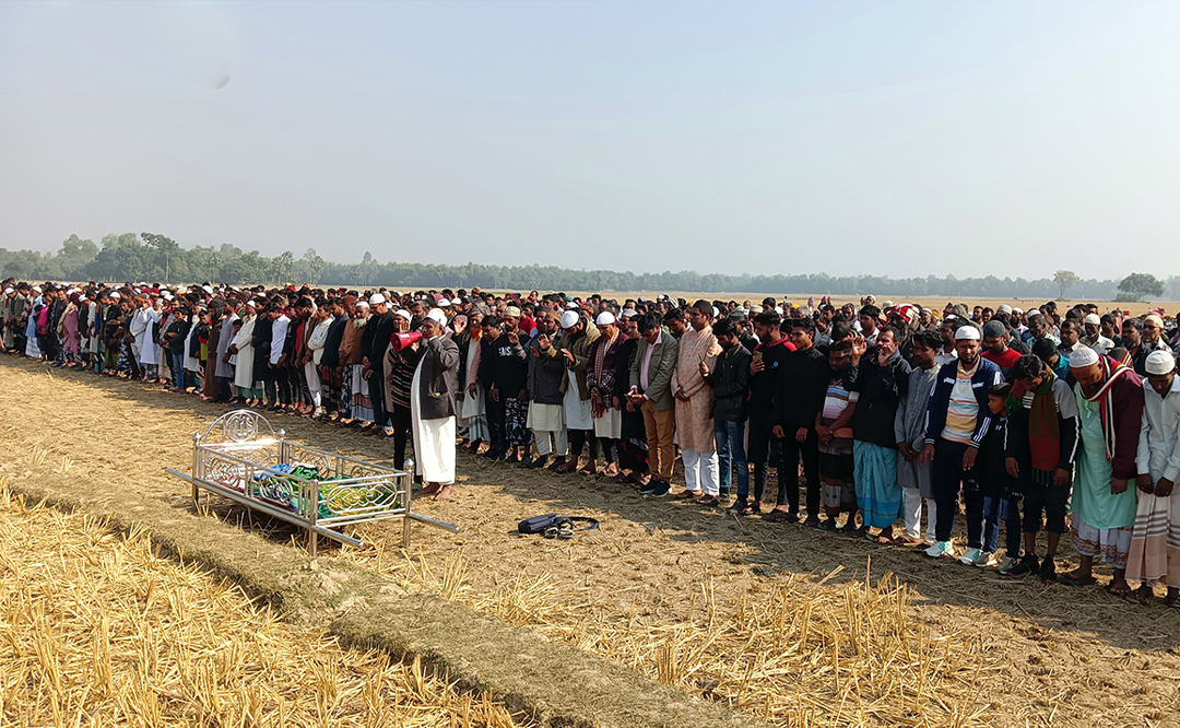 জানাজা শেষে যখন ছোট্ট কফিনটি কবরের দিকে নেওয়া হয়, চারপাশের বাতাস যেন ভারী হয়ে ওঠে। গ্রামবাসীর অনেকেই বলছিলেন, শিশু জানাজায় এমনভাবে পুরো গ্রামের একত্র হওয়া—এ দৃশ্য তারা কখনও দেখেননি।