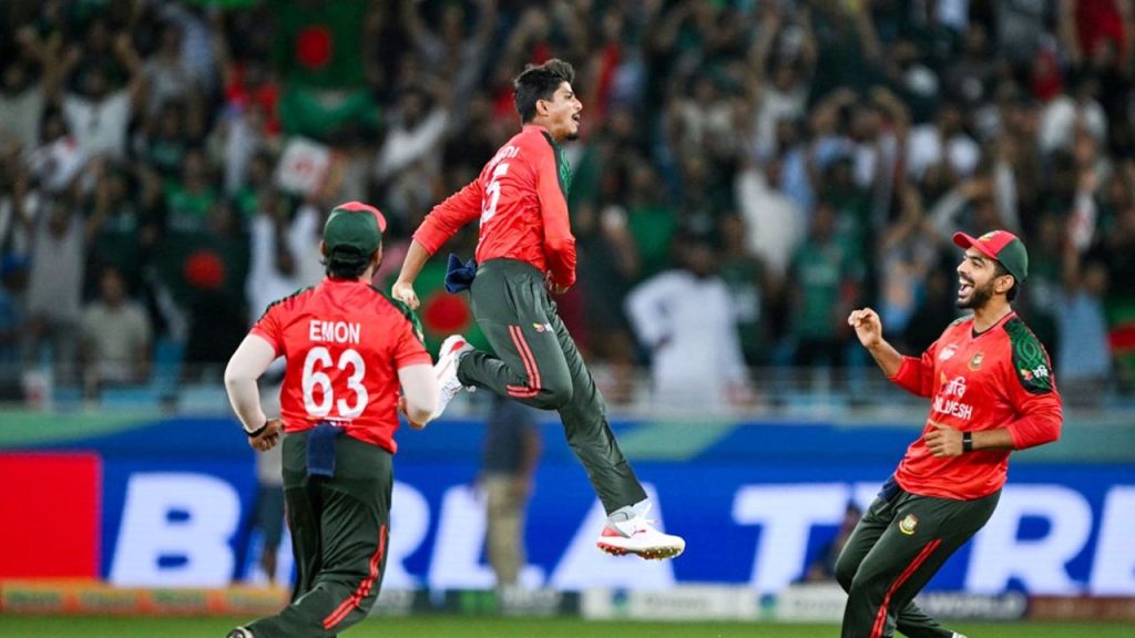 আগের ওভারে হারিসকে ফিরিয়ে পাকিস্তানের গুরুত্বপূর্ণ জুটি ভাঙেন মেহেদী। পরের ওভারে আরেক সেট ব্যাটার নওয়াজকে তালুবন্দি করিয়েছেন তাসকিন। ১৫ বলে ২৫ রান করা নওয়াজ পারভেজের দুর্দান্ত ক্যাচে পরিণত হয়েছেন। তাতে ১২০ রানে অষ্টম উইকেট হারায় তারা।